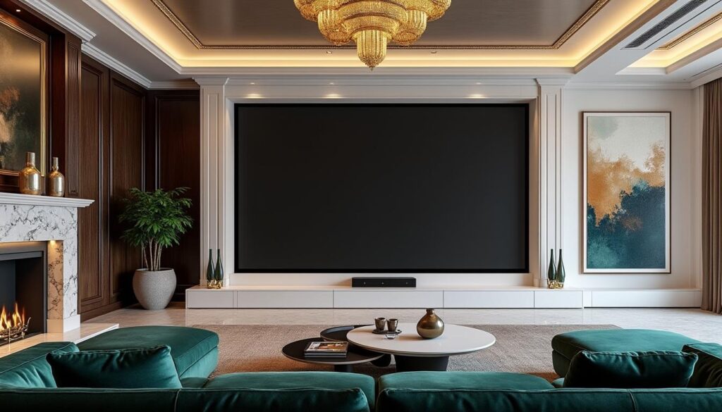Dans un monde où la technologie et le design intérieur coexistent, intégrant des éléments modernes tout en préservant une ambiance élégante, la question de l’intégration d’un écran de projection devient cruciale. L’alliance du décor luxe et de dispositifs technologiques ne se limite plus à des choix esthétiques, mais s’inscrit également dans une démarche réfléchie sur l’aménagement de l’espace. L’objectif principal est de concevoir un design intérieur élégant où la technologie est invisible, permettant ainsi de profiter d’un équipement haut de gamme sans altérer l’esthétique d’un intérieur raffiné. En explorant différentes solutions et idées, il est possible de transformer un espace classique en un lieu convivial et moderne sans compromettre son allure.