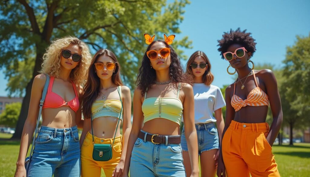 Les lunettes de soleil, souvent de forme audacieuse, sont un autre aspect à considérer. Par exemple, les modèles en forme de papillon ou ceux aux verres teintés sont parfaits pour créer une allure à la fois décontractée et élégante. De plus, les bijoux en plastique colorés, comme les bracelets et les colliers, ajoutent une touche nostalgique tout en restant légers et amusants à porter. Ce mélange d’éléments permet de réaliser des looks qui rappellent le meilleur du passé tout en étant totalement contemporains.