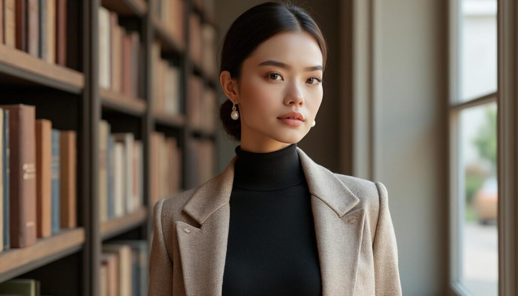 Les éléments de mode qui définissent le style old money sont à la fois emblématiques et distinctifs. Le choix des vêtements tire sa force d’une esthétique intemporelle, fondée sur des pièces qui, par définition, ne se démodent jamais. On découvre parmi ces incontournables des vêtements tels que les chemises blanches impeccables, les pantalons à pinces, ainsi que des jupes midi, souvent associées à des blazers bien coupés. La recherche de matières nobles comme le coton peigné et le lin de première qualité permet d’élever chaque pièce et de lui conférer une sophistication intrinsèque.