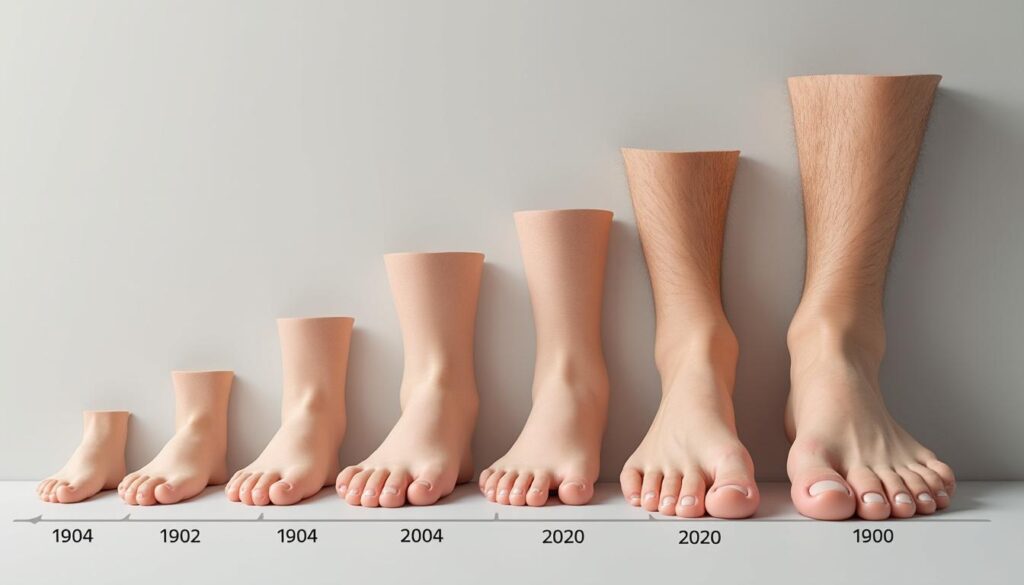 Une étude récente a mis en evidence qu’entre 1995 et 2020, la taille moyenne des pieds a augmenté, passant de 41 à 43 chez les hommes. Cela souligne non seulement un changement dans la morphologie physique, mais également un changement dans l’approche socioculturelle vis-à-vis de la santé et du bien-être. Le suivi des tendances anthropométriques est crucial pour la santé publique, car il permet d’ajuster les recommandations de santé et de nutrition adaptées aux populations.